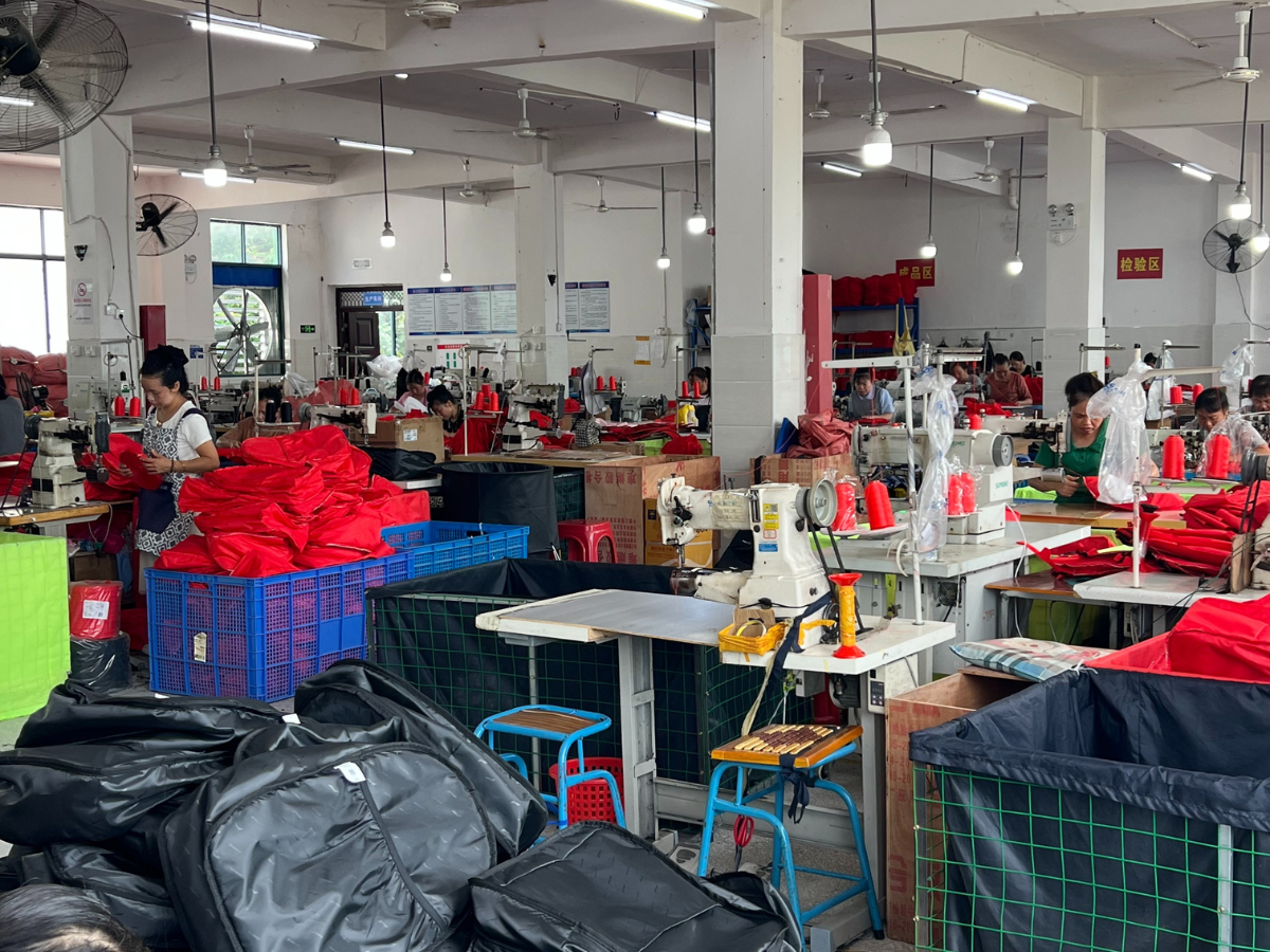 Our factory is located in Shiling Town, Guangzhou City, with a workshop of over 4000 square meters and a staff of more than 200 workers. We have first–class modern production facilities and 12 production lines, and annual production is over 7 million. It is currently one of the largest backpack manufacturers in China, integrating R&D, mold opening, material cutting, printing, sewing, packaging, and global trade sales, with strong cutting-edge technological capabilities, novel designs, exquisite craftsmanship, excellent quality, and professional service.
