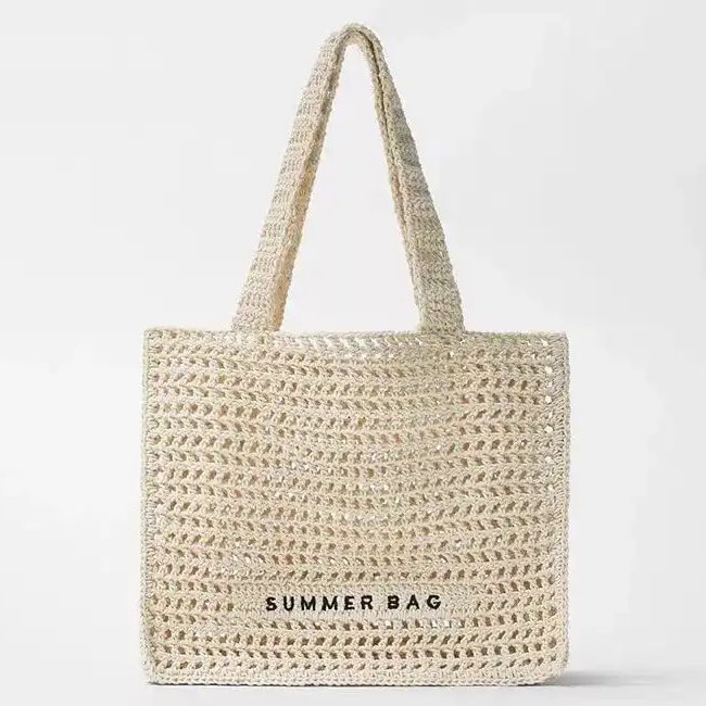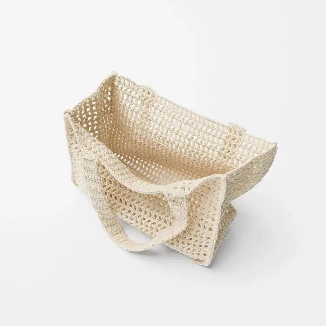 Manufacturers Custom With Embroidered Logo 2025 Summer Fashion Women Shoulder Hollow Out Cotton Crochet Woven Mesh Beach Tote Bag