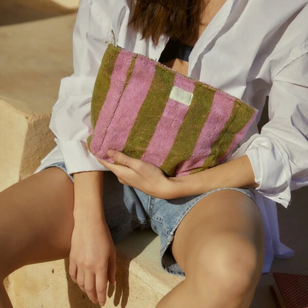 Manufacturers Custom With Print Logo Soft Striped Embroidered 100% Organic Cotton Terry Cloth Toiletry Makeup Cosmetic Pouch Bags