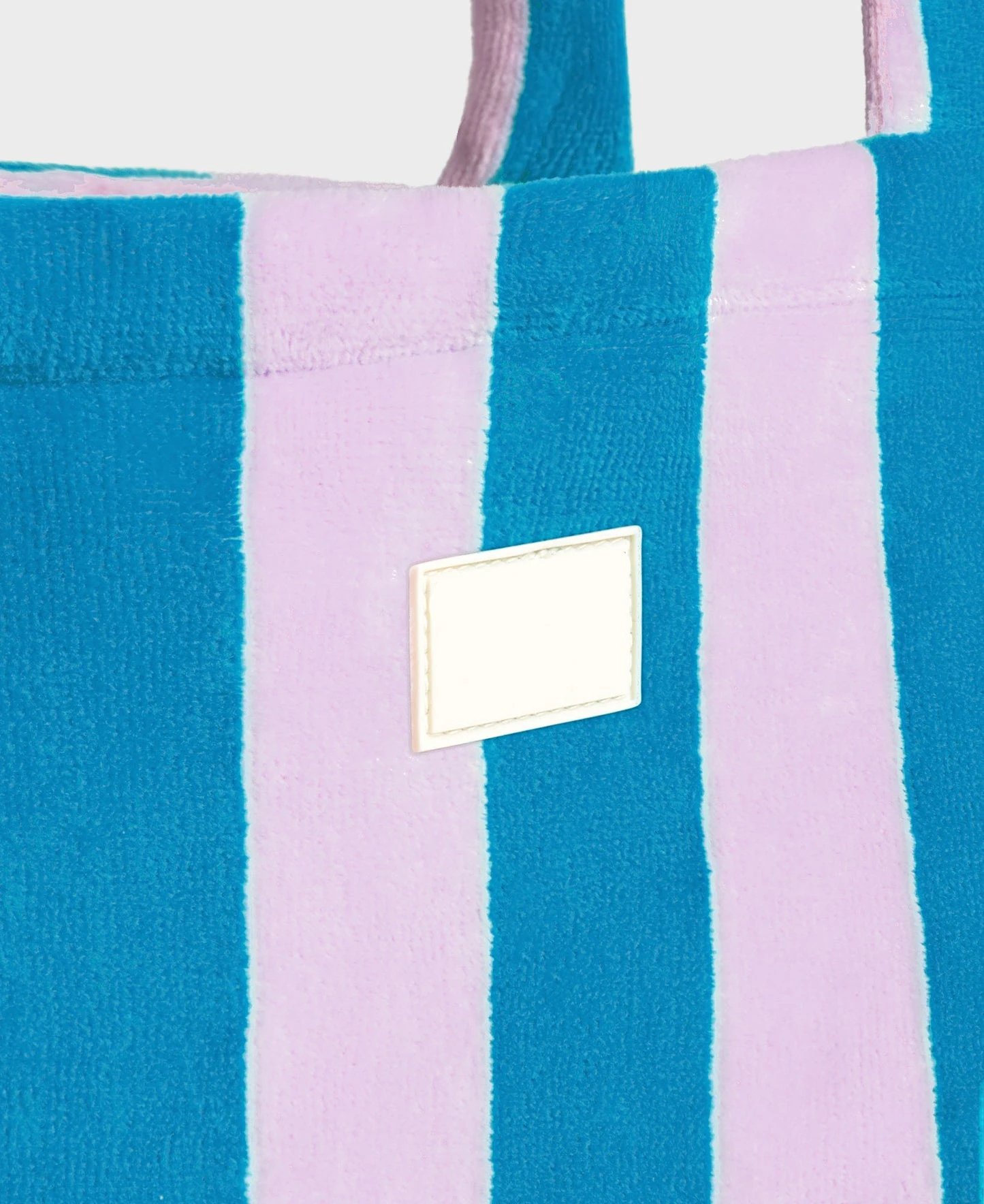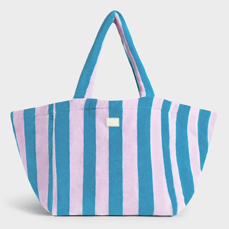 Manufacturers Custom With Printed Logo Fashion Striped Travel Beach 100% Organic Cotton Terry Cloth Hobo Bolso Tote Bag For Women